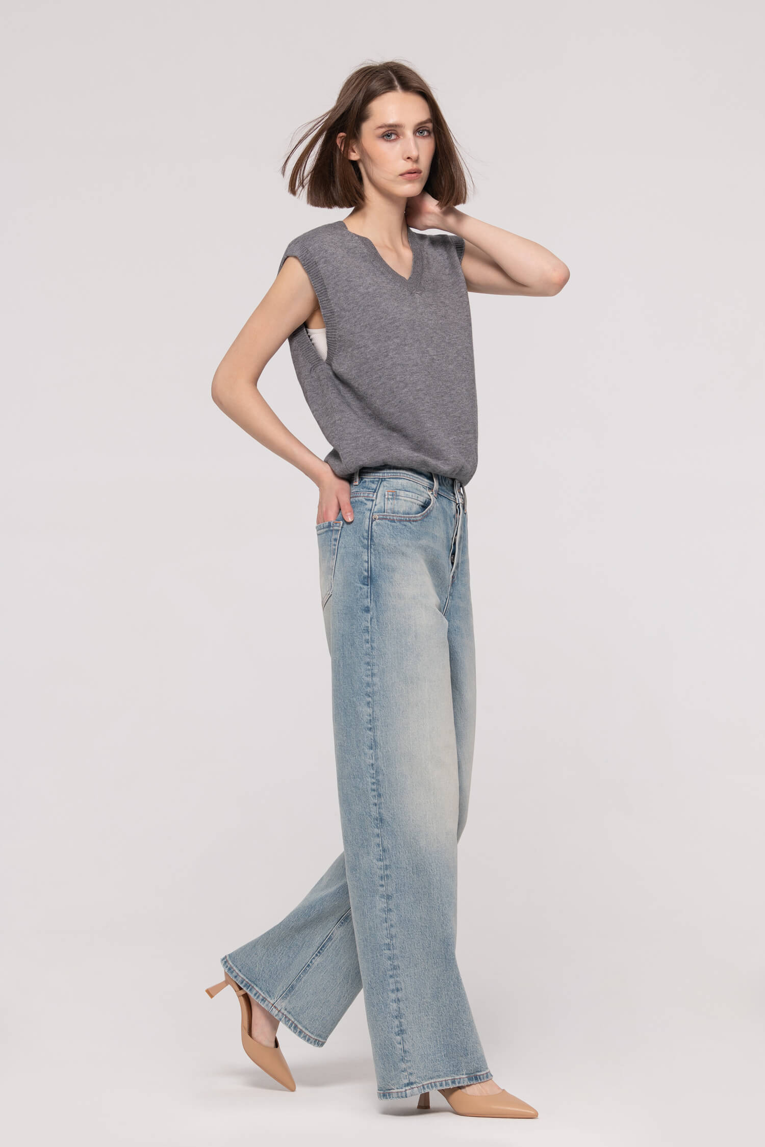 Chic high-rise wide-leg jeans feature a flattering button-fly design and vintage-inspired silhouette. The stretch denim offers all-day comfort while the wide leg elongates your frame. Perfect for brunch dates or night outs, these versatile jeans elevate any look with effortless style.